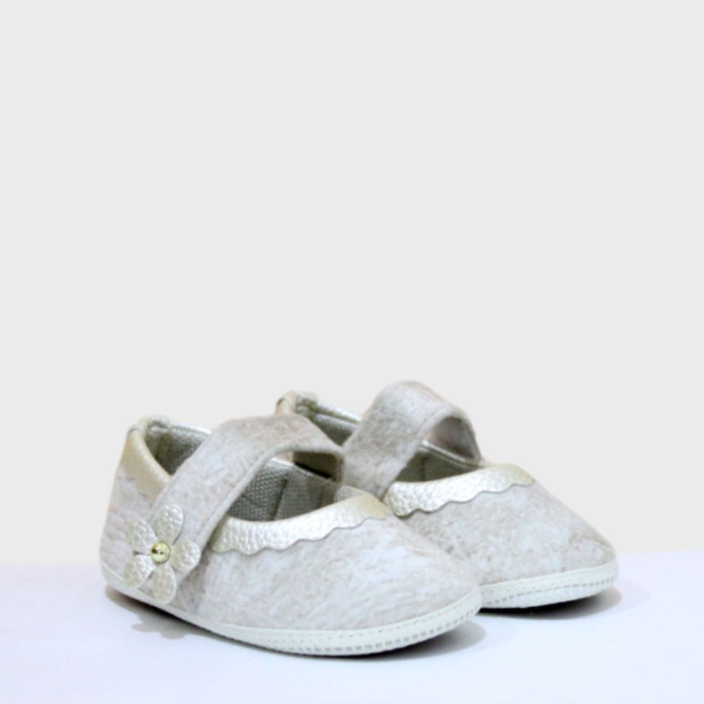 Zapato para bebé con detalles decorativos. Ajustable, suave y delicado, ideal para proteger los primeros pasos de tu pequeña.