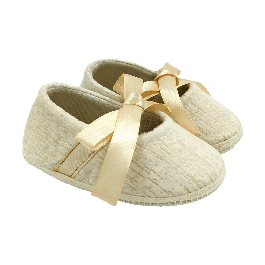 Zapato para bebé tipo valeta con cinta derazo ajustable y adornos, suave y delicado, ideal para proteger los primeros pasos de tu pequeño.