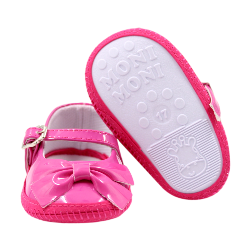 Zapato para niña con detalle decorativo. Ajustable, suave y delicado, ideal para proteger los primeros pasos de tu pequeña.