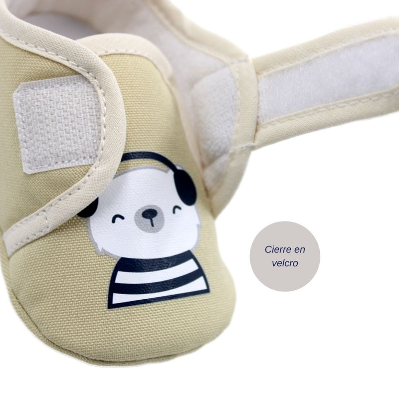 Zapato para bebé con estampado y cordones. Suave y delicado, ideal para proteger los primeros pasos de tu pequeña.